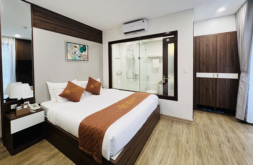 Đặt ý phục vụ và mang lại những đêm nghỉ thoải mái, sảng khoái nhất góp phần tạo nên một chuyến du lịch biển đảo vui nhất cho quý khách. Khách sạn đã thiết kế và trang bị 26 phòng ngủ đủ các tiêu chuẩn châu âu 4* sang trọng, thanh lịch và thoáng mát. Phòng 2 giường đơn hoặc 1 giường lớn cho cặp đôi với 1 bé nhỏ, phòng 2 giường lớn cho 4-5 người cùng nhóm và phòng thông phòng có 3 giường cho đại gia đình 5-6 người. Giá phòng tốt nhất và sự công bằng được cam kết.